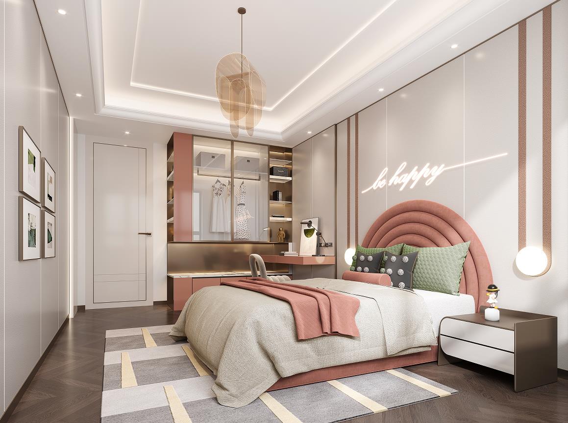 一層次臥,在家人們獨(dú)自的臥室空間中,我們針對(duì)不同成員的使用習(xí)慣,進(jìn)行空間元素、材質(zhì)與色彩的調(diào)配。整體色調(diào)以淺色素雅為主,營造靜謐平和的空間基調(diào)。