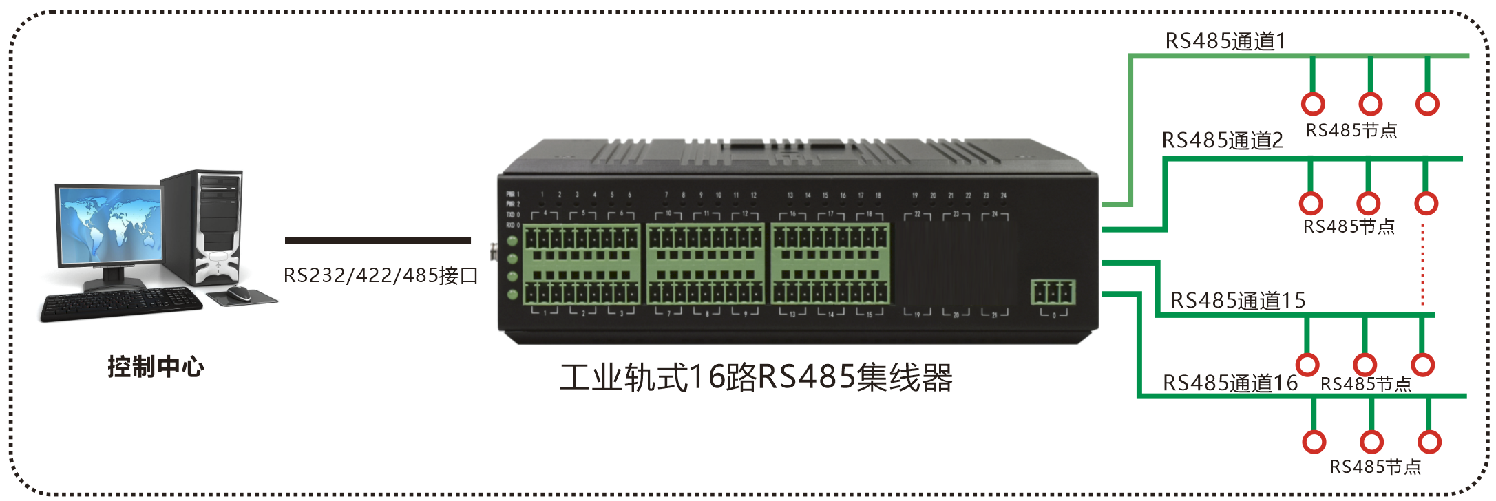 | 業務端口描述 | 16路RS485通道,1路上聯RS232/422/485(可選)接口 |